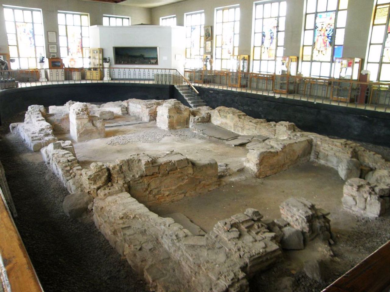 Експозиційний павільйон Археологічного музею Переяслава зведено 1957 р. над залишками Спаського храму XI ст., що знаходився на території міського посаду і слугував усипальницею знатих людей давнього Переяслава княжих часів. Таким чином вдалося зберегти та представити на огляд відвідувачів фргаменти підмурків і стін давньоруського храму із залишками фрескового розпису, вимощену керамічними плитами підлогу, поховання у цегляних саркофагах під шиферними плитами.