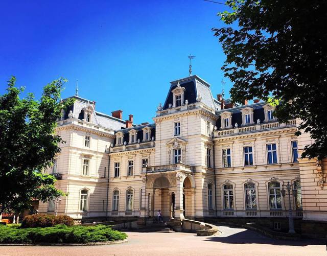 Самый роскошный дворец Львова создан для влиятельных польских магнатов Потоцких по проекту коллектива львовских архитекторов Людвига Балдвина-Рамулта, Юлиуша Цыбульского, Петра Гарасимовича и Леонарда Маркони. Заказчиком был граф Альфред II Юзеф Потоцкий, завершал строительство его сын Роман Потоцкий. Дворец в стиле историзма спроектирован по образцу резиденций entre cour et jardin короля Людовика XIV эпохи барочного классицизма, когда четкая планировка сочетается с богатым внешним оформлением. Сохранились интерьеры в стиле короля Людовика XVI. В частности, на первом этаже размещены парадные залы для приема гостей, в оформлении которых широко использована лепнина, позолота, цветной мрамор, роспись. В советское время здесь размещался Дворец бракосочетаний.